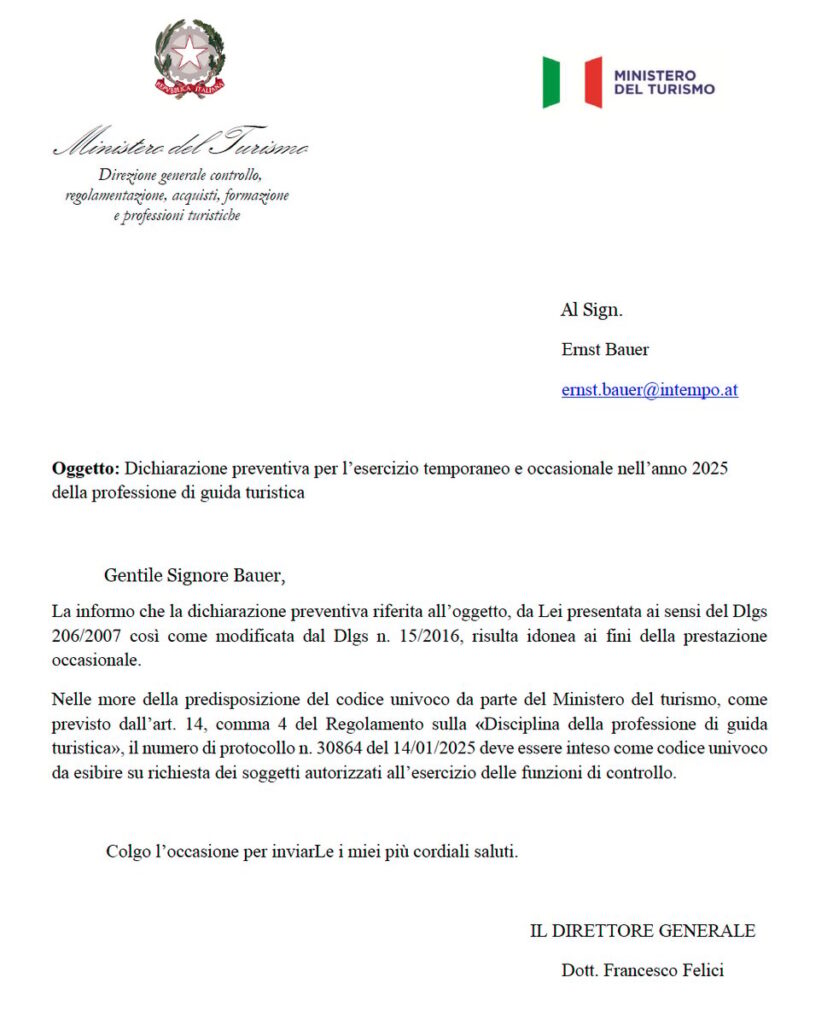 Wir weisen hiermit unsere Berechtigung nach, in Italien auch 2025 als